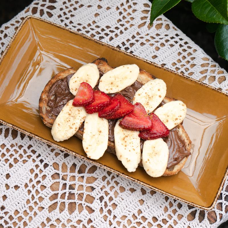 Sourdough topped with hazelnut spread, strawberries, banana & dusted with cinnamon *Vegetarian, Gluten Free Available