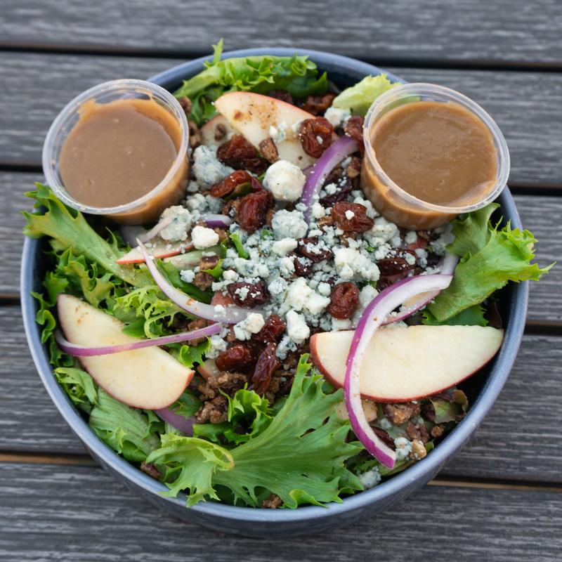 Mixed greens, apple, dried cherries, candied pecans, Gorgonzola, red onion, maple balsamic