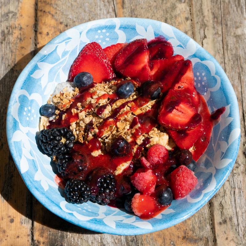House chia seed pudding with seasonal berries, artisan granola & topped with seasonal jam *Gluten Free & Vegan