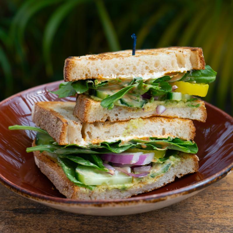Pepperoncini, spinach, red onion, cucumber, avocado & garlic chive cream cheese on toasted sourdough *Vegetarian, Gluten Free Available