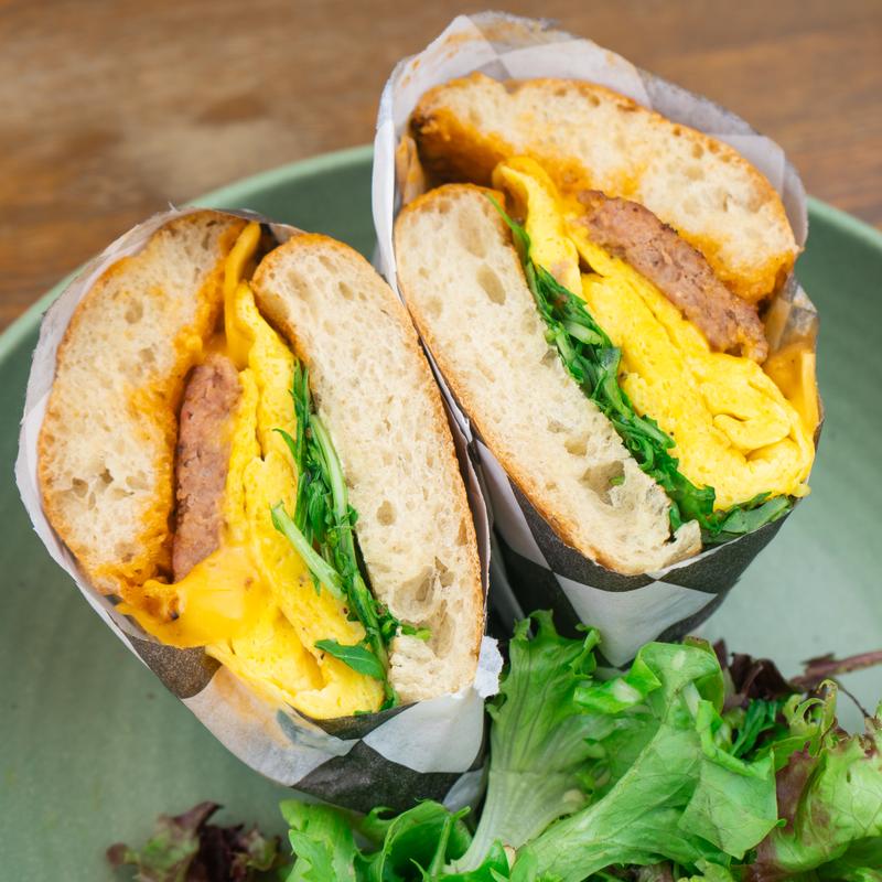 Two scrambled eggs, sausage, American cheese, spicy aioli, arugula & our signature hot honey on a Ciabatta roll