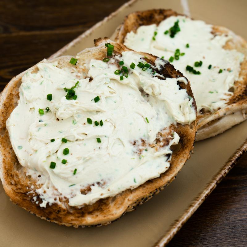 Everything bagel with garlic chive cream cheese *Vegetarian