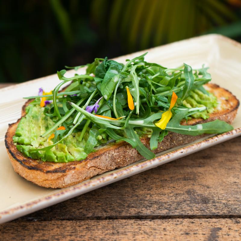 Fresh avocado on sourdough topped with dressed arugula *Vegetarian, Gluten Free Available